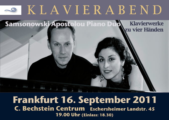Polytropon-V.Chatzivassios möchte auf eine musikalische Reise durch Zeiten und Länder mit dem Samsonowski Apostolou Piano Duo hinweisen und bittet um einen Eintrag in Ihrem Kulturkalender.