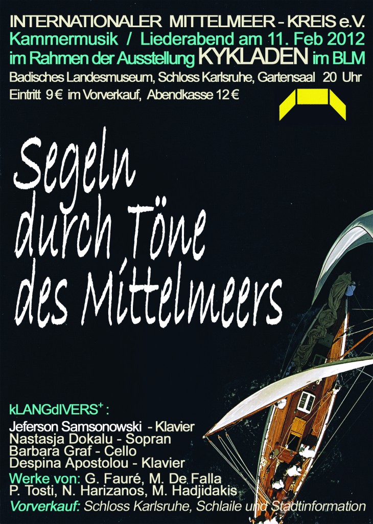 Ihre Komponisten für diesen Abend sind u.a. Yannis Konstandinitis, Dimitris Mitropoulos, Nikos Skalkottas, sowie Mikis Theodorakis und Manos Hatzidakis.